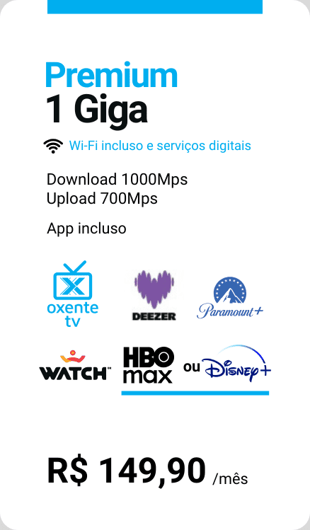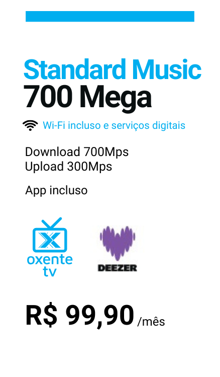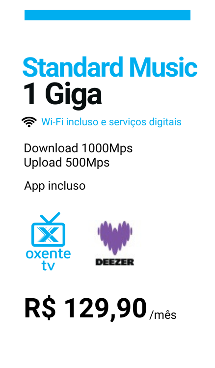 Com a Oxente Net, você obtém acesso ao Deezer Premium, que oferece música sem anúncios, qualidade de som superior e a possibilidade de baixar músicas para ouvir offline. Além disso, os clientes da Oxente Net podem aproveitar ofertas exclusivas e descontos.
